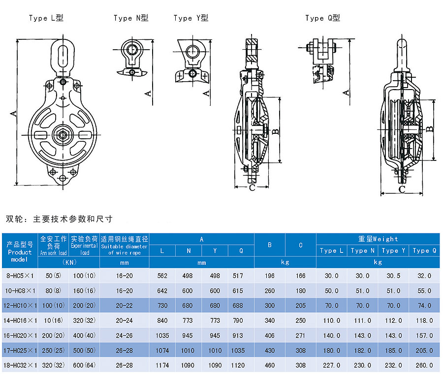 XC系列雙輪船用鋼索滑車