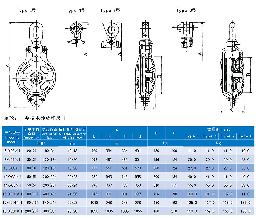 XC系列單輪船用鋼索滑車