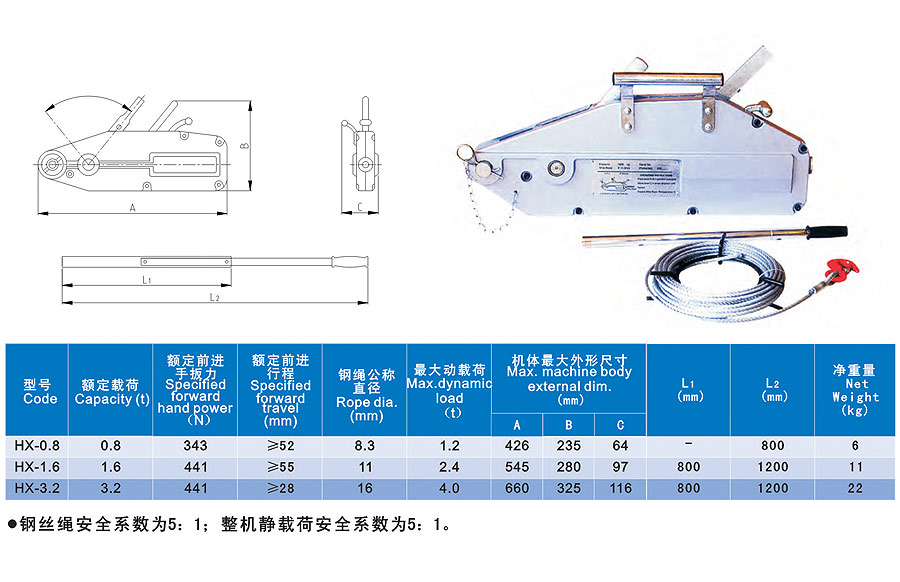 鋼絲繩手扳牽引機(jī)